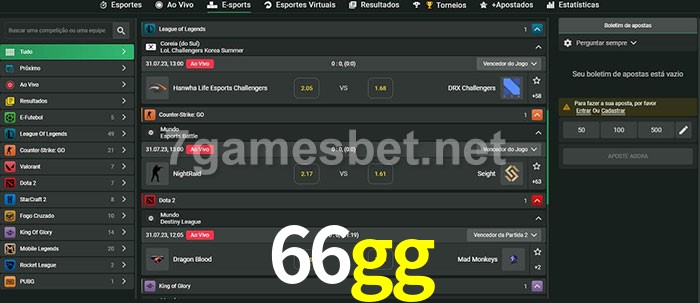 O 66gg oferece uma grande seleção de opções de apostas em e-sports com probabilidades competitivas